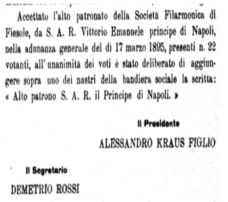 Di notevole importanza è anche la carta intestata della Società, dove è chiaramente riportata l’approvazione “Alto Patronato di S. M. il Re V. E. III”.